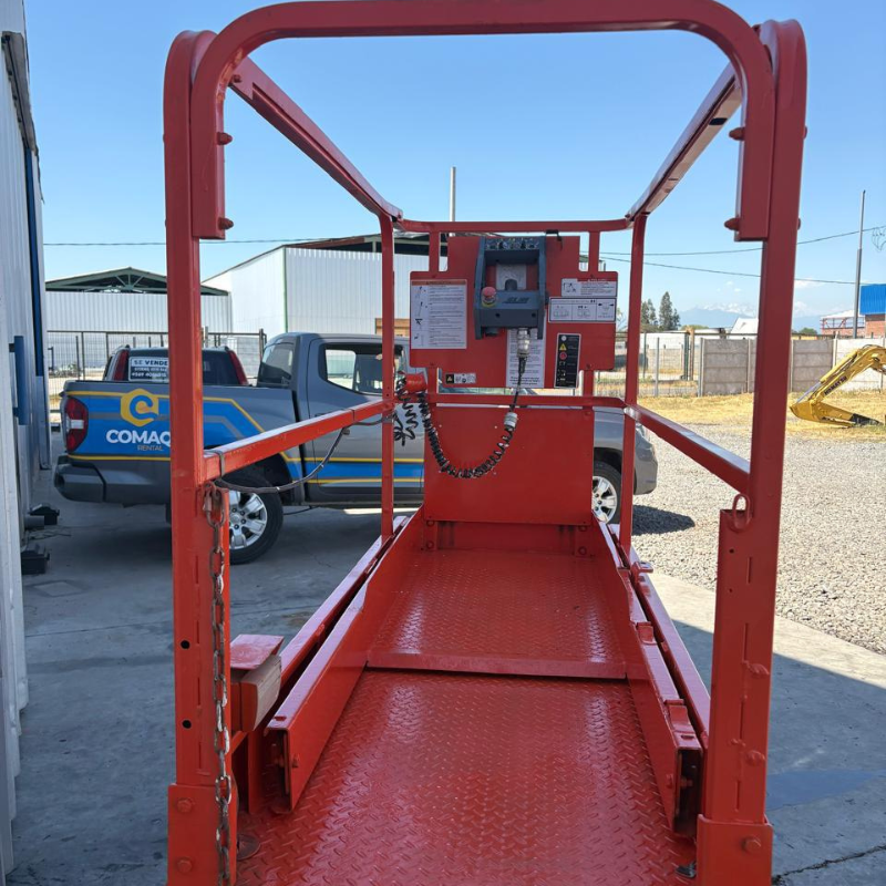 Su estructura compacta —solo 76 cm de ancho— y su altura máxima de trabajo cercana a los 7,7 metros la convierten en una solución ideal para instalaciones eléctricas, montaje de estructuras, mantención de naves industriales y trabajos en altura que requieren estabilidad y control total.
